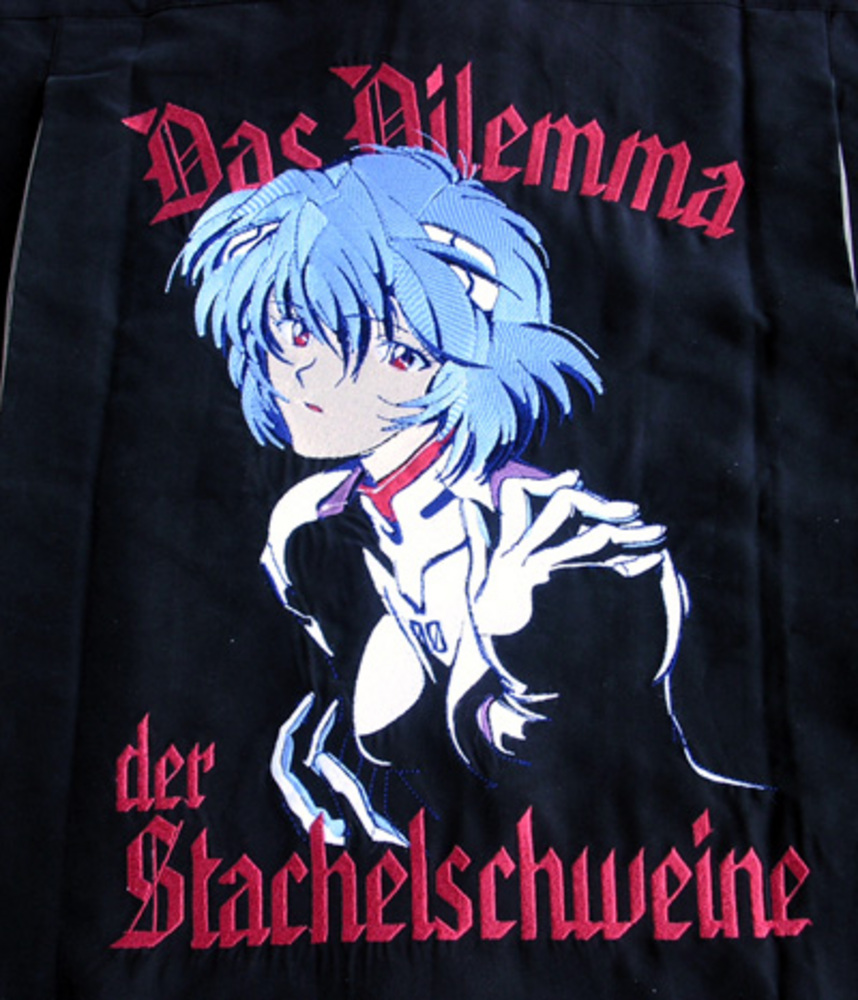 エヴァンゲリオン 綾波ボウリングシャツ ブラック×クリーム Lサイズコスパ
