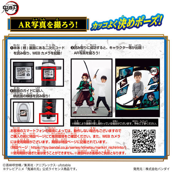 | 商品説明: | テレビアニメ『鬼滅の刃』より、 「鬼滅の刃 NARIKIRI日輪刀~竈門炭治郎~」が登場! ARでも遊べる「鬼滅の刃 NARIKIRI日輪刀」シリーズ! 炭治郎の型や台詞の劇中音を全8種(型3種・セリフ5種)収録し、なりきり遊びが楽しめます。 持ち手裏面の二次元コードをスマートフォンのカメラで読み込めば、「鬼滅の刃」のキャラクターとAR写真が撮れるWEBカメラも楽しめます。 全長約35cm。 |