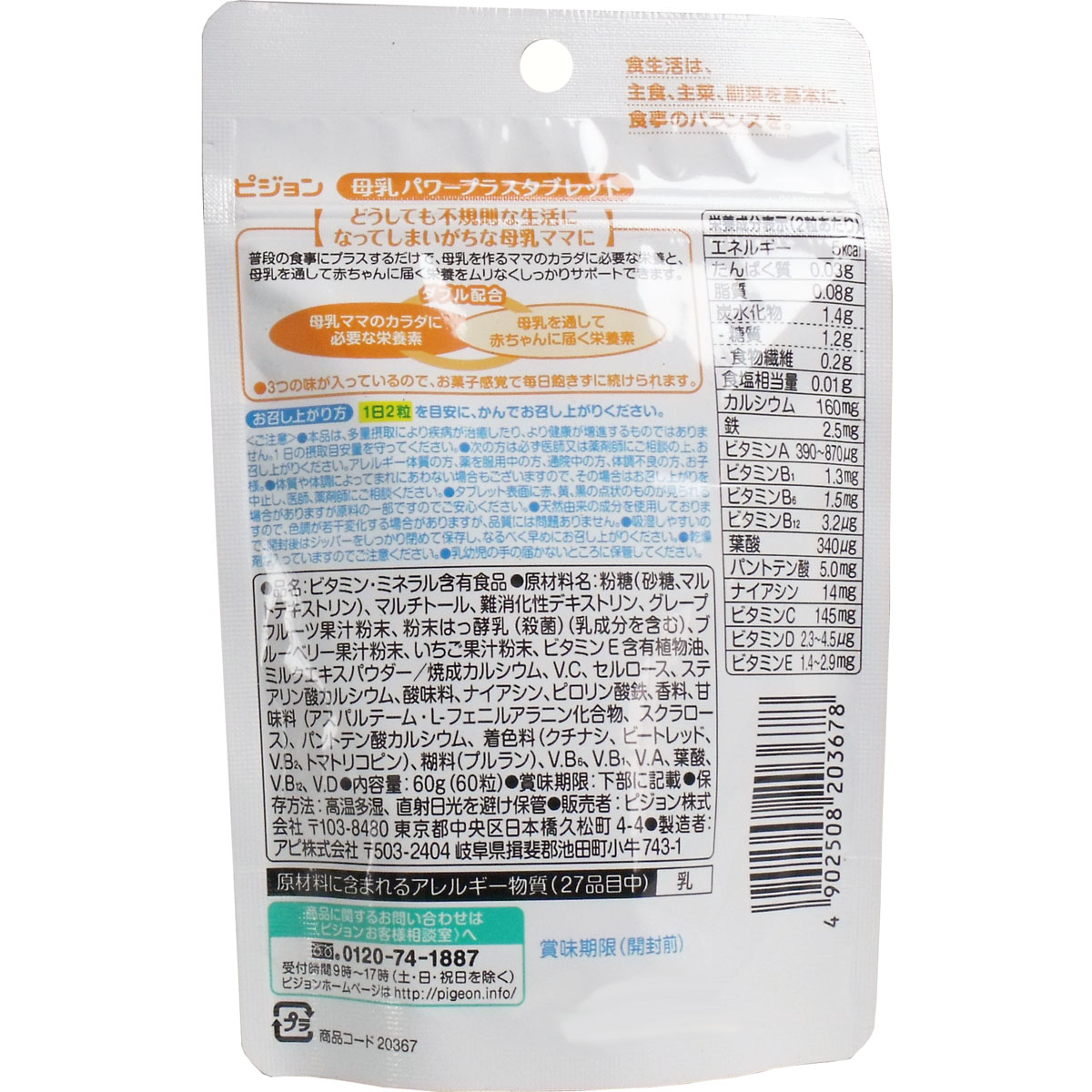 ピジョン 母乳パワープラス タブレット 60粒入