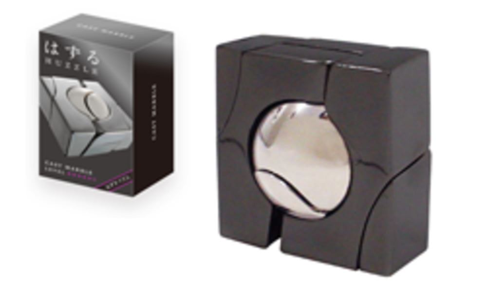 アクセサリーとしても見劣りすることがないほど美しい造型。中心の球体の分割ラインは外す際にはじっくりと見てほしいポイントだ。アメリカのパズル作家Bram Cohenとオランダのパズル作家Oskarのデザイン。