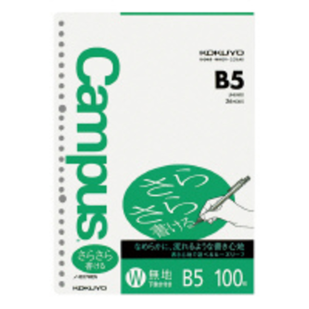 キャンパスルーズリーフ(さらさら書ける)無地 B5 100枚 ノ-837WEN コクヨ