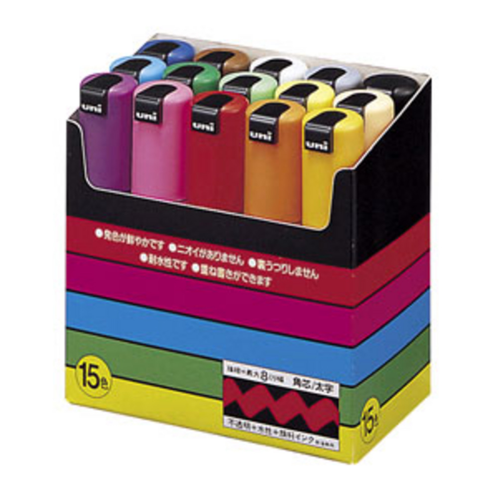 ポスカ 水性サインペン 太字角芯 15色セット 三菱鉛筆