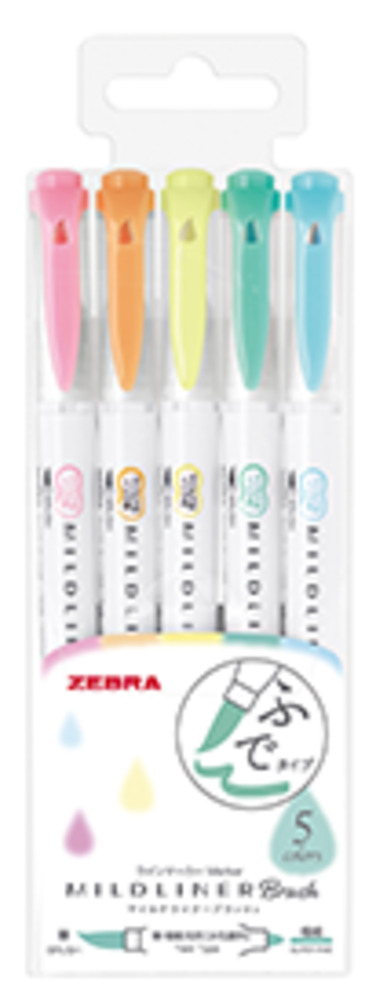 蛍光ペン マイルドライナーブラッシュ 和みマイルド色5色セット WKT7-5C-RC ゼブラ